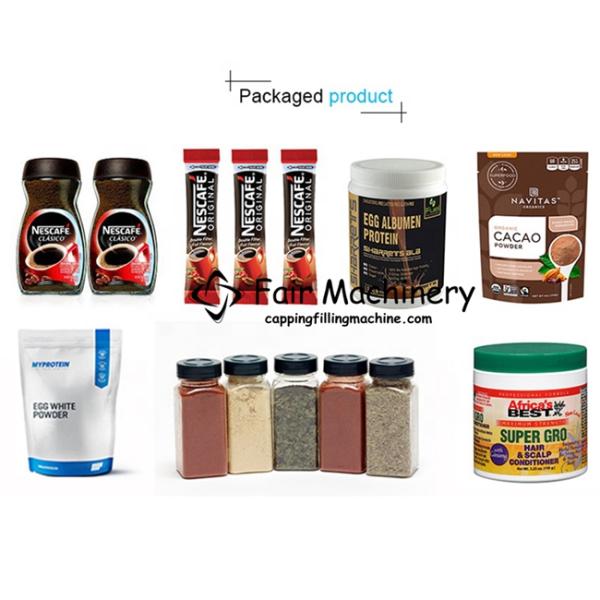 This machine is an automatic powder and small particle filling machine, which can complete automatic bottle positioning, filling and metering. It consists of a filling head, a chain conveyor belt and a positioning device. It adopts a servo motor, PLC and Touch screen control, easy operation and high stability. It can be combined with bottle unscrambler, capping machine, labeling machine, etc. to form a complete filling line. It is suitable for packaging powder and small granular materials, such as powders, small granular medicines, veterinary drugs, glucose, condiments, solid beverages, carbon powder, talcum powder, pesticides, etc.